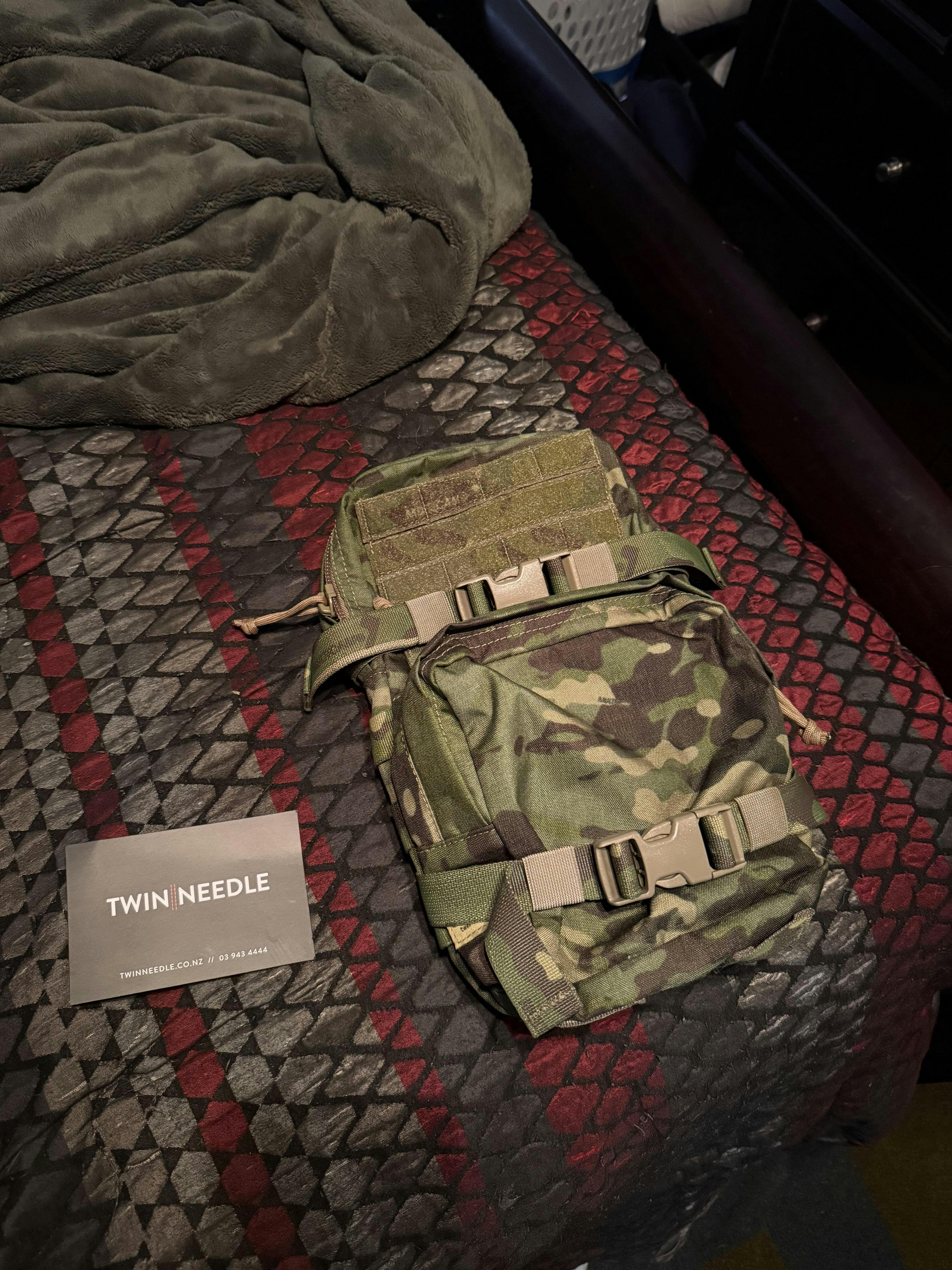 Based on the venerable MAP (modular assault pack). This has been shortened to give it a lower profile when being worn on a plate carrier. The large main compartment features a sleeve to secure a 2-litre bladder (3-litre bladders will fit if they are not completely filled) and the external pouch can carry a 24-hour ORP (operational ration pack).