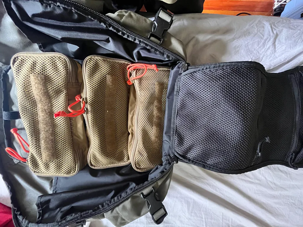 A built-in hip belt interface sits inside the frame sleeve, with a purpose-made TacKea belt arriving next year alongside a full internal organisation suite and overload accessories.